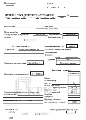 Путевой лист.