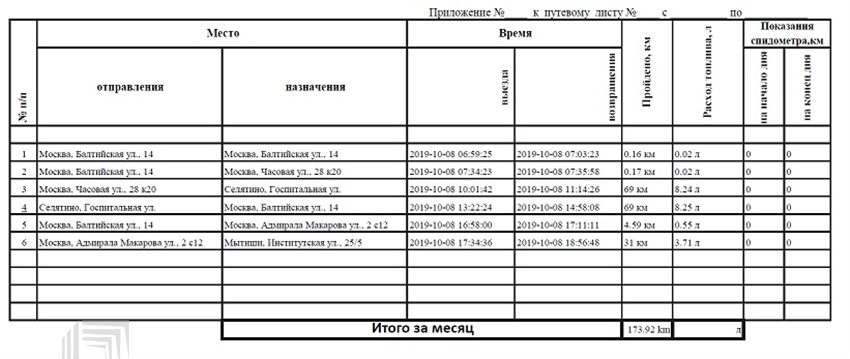 Примеры отчетов ГЛОНАСС |